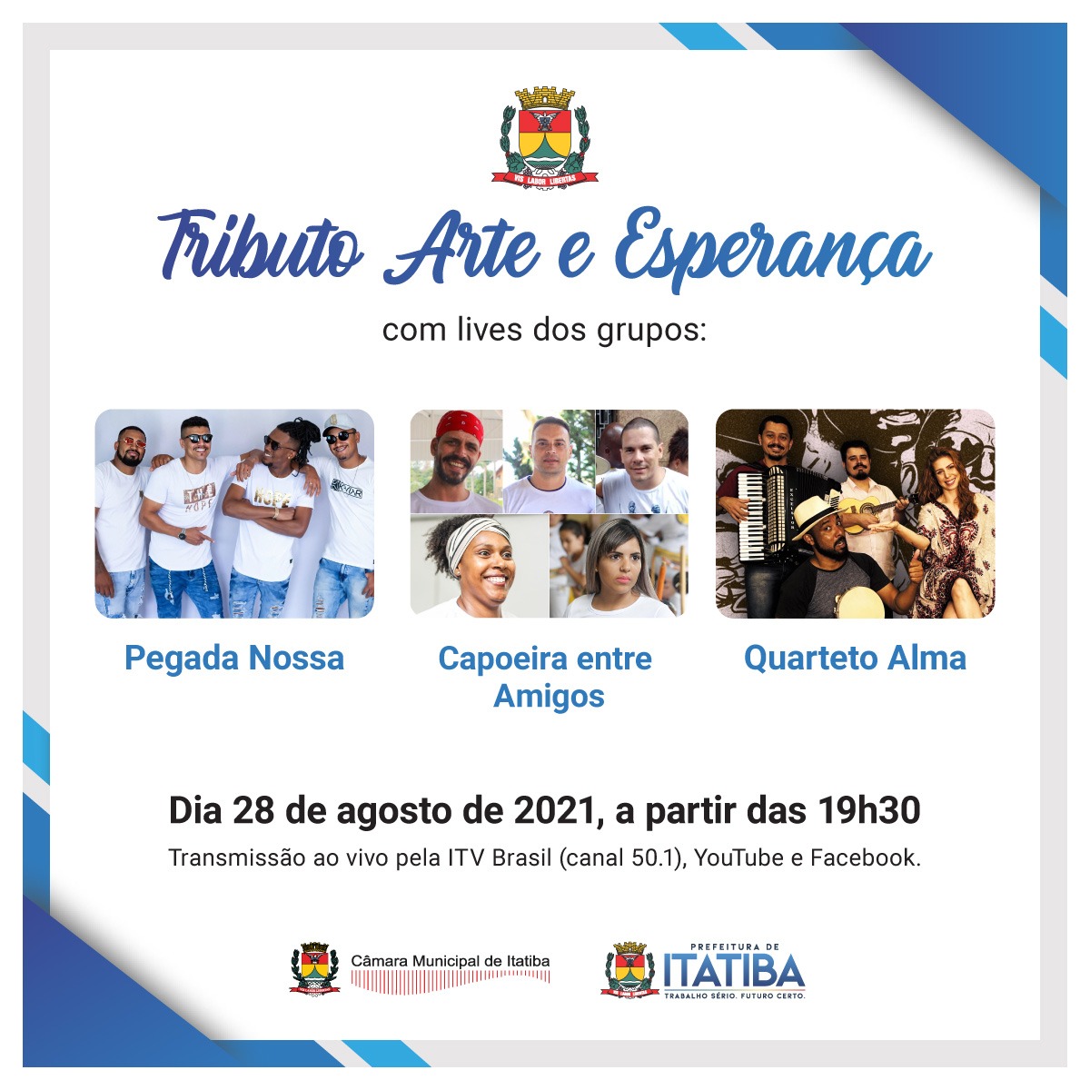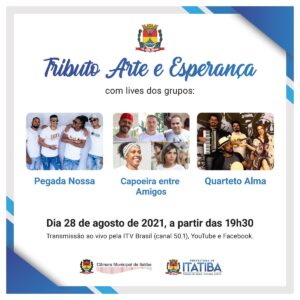 Essa primeira apresentação será uma live, com um show de artistas itatibenses chamado “Tributo Arte e Esperança”. Conforme o prefeito Thomás Capeletto de Oliveira, o título do show bem representa esse momento em que as nossas esperanças se renovam vislumbrando um futuro promissor. E para isso, nada melhor do que a arte e a cultura para tornar a nossa vida melhor, completou.
