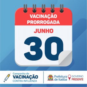 De acordo com normativa do Ministério da Saúde, a Campanha Nacional de Vacinação contra a Influenza foi estendida até o dia 30 de junho. A iniciativa é válida para que a meta estabelecida de imunização dos grupos prioritários chegue a 90%. A vacinação contribui para a redução de complicações, internações e, consequentemente da mortalidade decorrente de infecções pelos vírus da gripe nos grupos definidos.