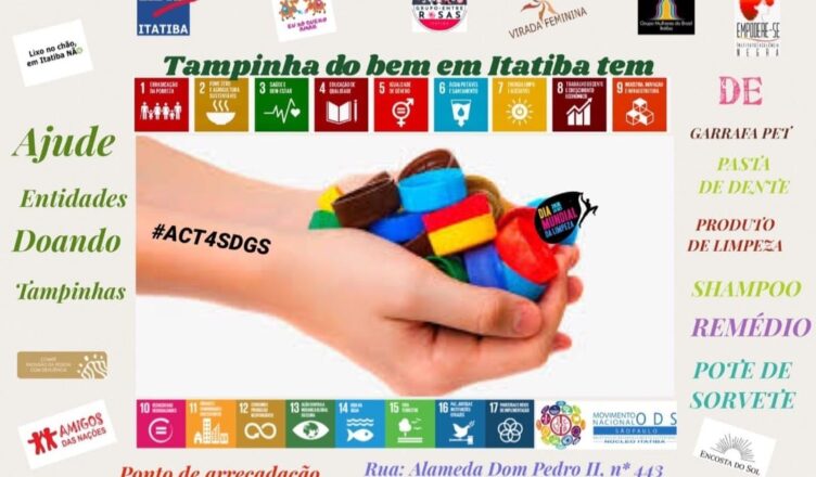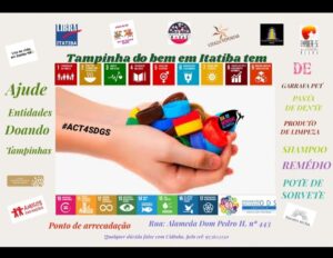 É por isso que o Movimento Nacional ODS São Paulo- comitê Itatiba começou uma campanha de arrecadação de tampinhas plásticas, em parceria com o Grupo de Mulheres do Brasil – Núcleo Itatiba, comitê sustentabilidade e PCD, líderes do Instituto Limpa Brasil – Itatiba, Projeto Lixo no Chão em Itatiba Não, Entre Rosas Itatiba , LIBRA Itatiba, Virada Feminina-Itatiba e Projeto Eu Só Quero Amar, Igreja Adventista, Bairro Encosta do Sol, AMIGOS Das Nações, Istituto Excelência NEGRA.A ideia é arrecadar 1.000 quilos de tampinhas plásticas, que serão revertidos para o ROTARY CLUB -Itatiba para eles arrumarem as cadeiras de rodas.