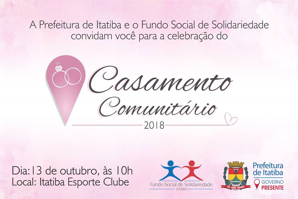 Casamento Comunitário neste Sábado (13), às 10h, prestigie!