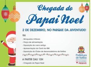 Chegada do Papai Noel neste Domingo, 02/12