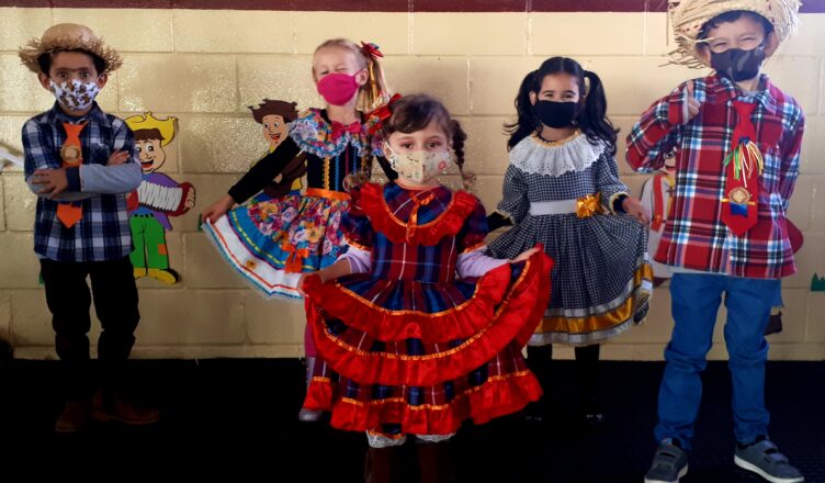 Com número reduzido de alunos e turmas intercaladas devido à pandemia do coronavírus, os alunos apresentaram  danças típicas em comemoração ‘simbólica’ às festas juninas, que foram gravadas em vídeo. Sem platéia presente, porém, um show on-line repleto de amor!