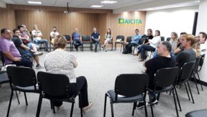 A Associação Industrial e Comercial de Itatiba (Aicita) recebeu na manhã da última quarta-feira (24 de abril de 2019), em seu Auditório Ivan Nunes Simões, no Edifício Inside Corporate, cerca de 20 empresários com estabelecimentos na área central da cidade. O encontro visou buscar ideias e soluções para que cresça o fluxo de passantes e, consequentemente, as vendas do centro comercial.