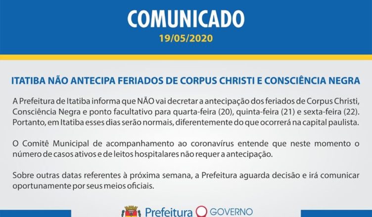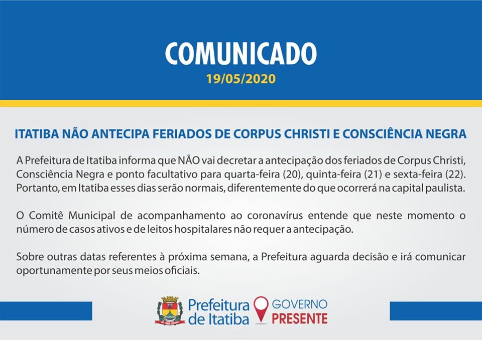 Recebemos da Prefeitura Municipal de Itatiba