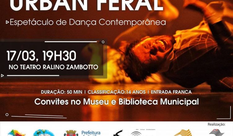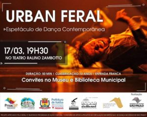 A Prefeitura de Itatiba, por meio da Secretaria de Cultura e Turismo, convida para o Espetáculo de Dança Contemporânea: Urban Feral.