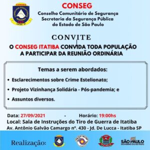 O *Conselho de Segurança de Itatiba* convida toda a população a participar de nossos encontros mensais.