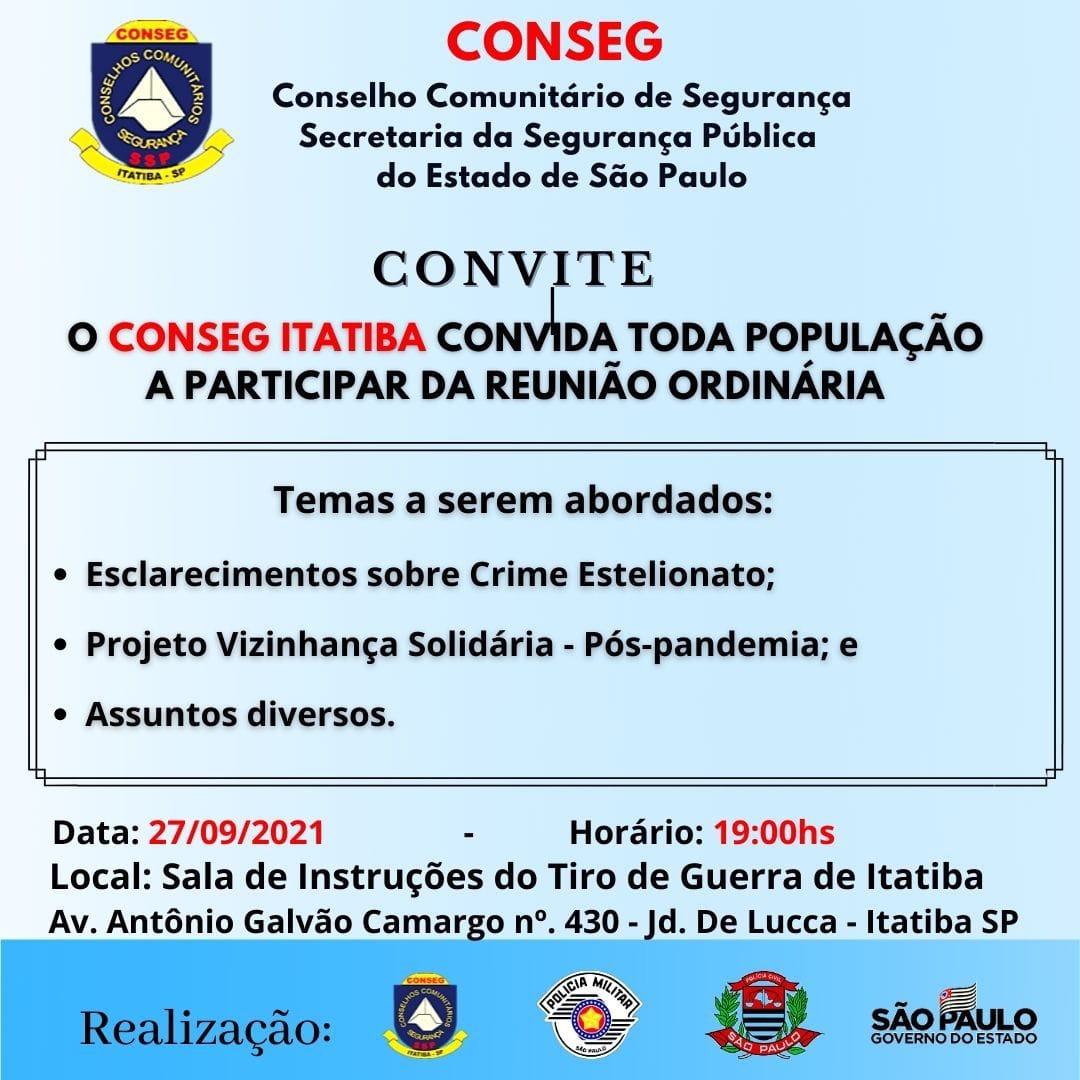 O *Conselho de Segurança de Itatiba* convida toda a população a participar de nossos encontros mensais.