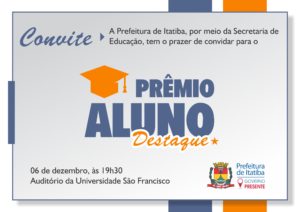 Prêmio Aluno Destaque é nesta quinta-feira,06/12.