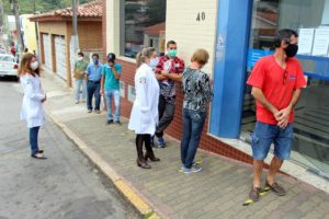 Durante as abordagens aos munícipes que transitam na rua sem máscaras, a equipe presta a orientação sobre a importância da utilização e, caso o indivíduo não tenha, ele recebe gratuitamente uma máscara lavável.