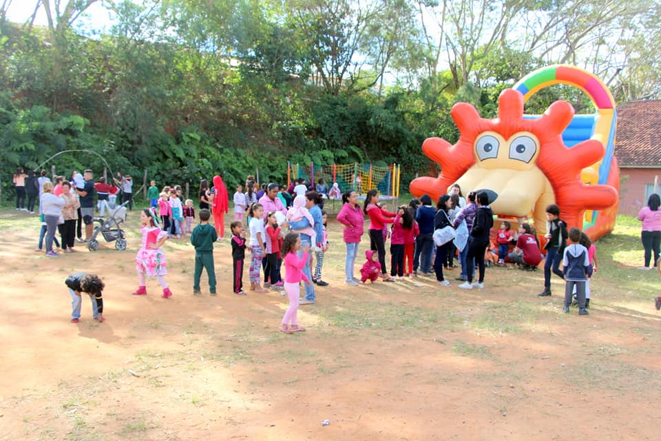 Não faltaram atividades para as crianças que se divertiram com a cama elástica, brinquedos infláveis, pipoca, algodão doce e cachorro quente.