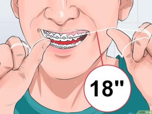 5 – Passe fio dental nos dentes. Todas as vezes que escová-los, tire um tempo para passar fio dental, também. Já que é muito fácil que restos de comida fiquem presos nos dentes com aparelho e acumulem placa, o fio pode ajudar a removê-los.