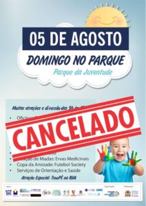 Domingo no Parque Cancelado agosto 3, 2018admin Atenção: devido às condições climáticas, a Secretaria da Educação alerta que o Domingo no Parque foi cancelado. As demais atrações da 7ª Semana do Bebê estão mantidas conforme divulgado. Fonte: Prefeitura de Itatiba