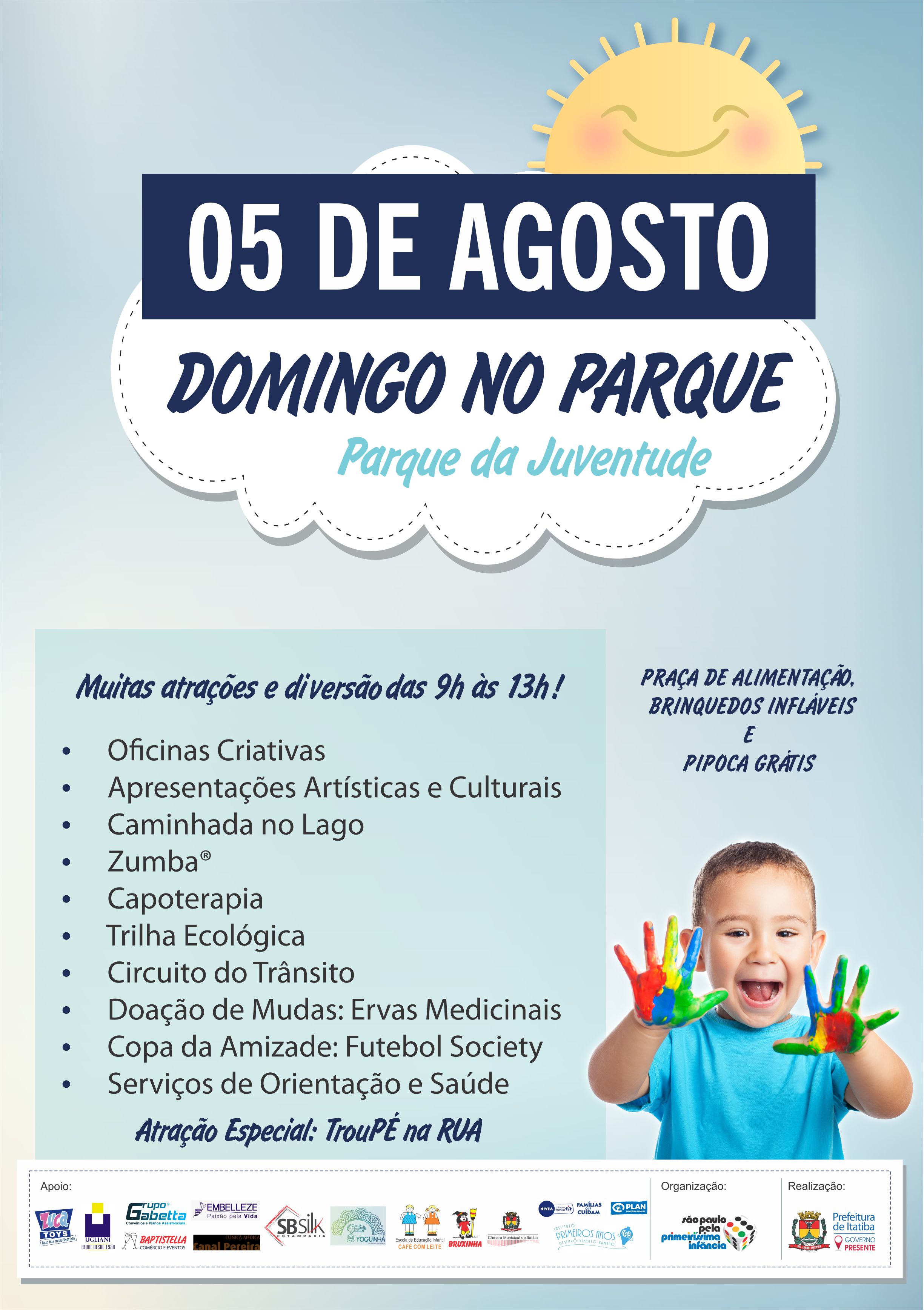 O Parque da Juventude receberá neste final de semana o “Domingo no Parque”, um dia dedicado para toda a família se divertir com muito aprendizado, ação que faz parte da 7ª Semana do Bebê.