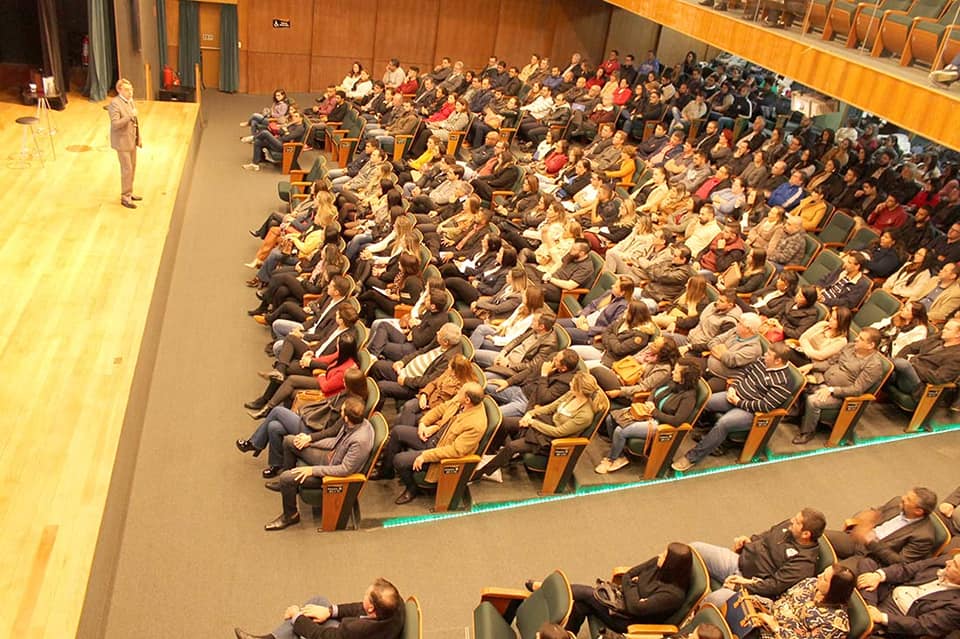O público presente na Palestra de Atualização Profissional da Associação Industrial e Comercial de Itatiba (Aicita) aplaudiu em pé Eduardo Tevah, que apresentou Os Diferenciais das Pessoas de Sucesso no Teatro Ralino Zambotto na noite de quinta-feira (18/07/19). O evento integra o Programa de Parceria Continuada, formado, na edição 2018/2019, pelas seguintes empresas: ACCredito, Colégio Objetivo/Unip, Dryall, EC Treinamentos, Grupo Gabetta, Jornal de Itatiba, Labene, Locatudo, Mocambo, Orthocenter, Raízes, Sicredi, Simões & Cabral e Unimed.