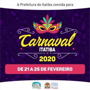 A Prefeitura de Itatiba, através da Secretaria de Cultura e Turismo, promoverá a eleição da Corte do Carnaval. Serão escolhidos os representantes Oficiais, Mirins e da Melhor Idade, em um evento que remarcado por motivos técnicos para o dia 16 de fevereiro de 2020, a partir das 13h30, no Parque da Juventude.