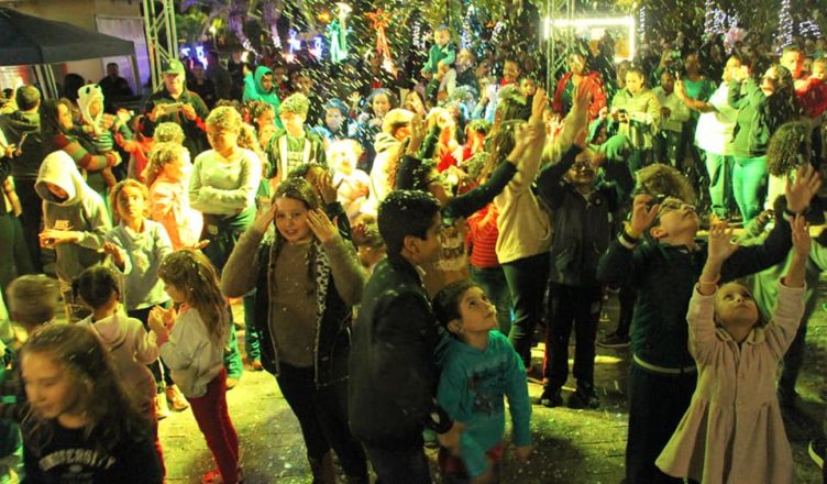 Após a contagem regressiva feita pelo prefeito Marco Antonio de Oliveira e as crianças, toda a iluminação natalina da cidade foi acesa. As crianças também puderam se divertir com a neve artificial.