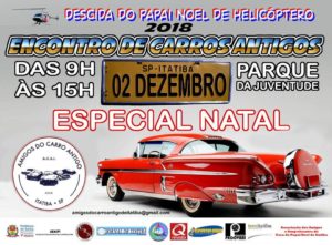Encontro de Carros Antigos neste Domingo, 02/12 novembro 28, 2018admin Com entrada franca o encontro de carros antigos “Especial de Natal” acontece neste domingo, 02/12, à partir das 9h, no Parque da Juventude. Prestigie com sua família !