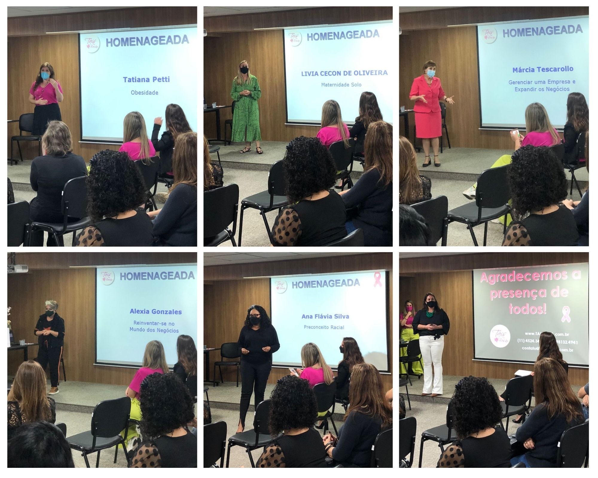 O evento apresentado pela consultora Debora Giani abordou a resiliência através das convidadas: Tatiana Rostaiser Petti, falando sobre obesidade; Livia Ceccon de Oliveira, sobre maternidade solo; Márcia Tescarollo, sobre expansão dos negócios; Alexia Gonzales, sobre reinventar os negócios; e Ana Flávia Silva, sobre preconceito racial; sendo mediado pela psicoterapeuta Tais Boza.