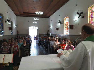 Um grande bolo com refrigerante foi servido ao som da banda “Forronejo”, encerrando com a missa na Capela com o Vigário Paroquial Monsenhor José Herculano Arruda e o coral Santa Cecília.