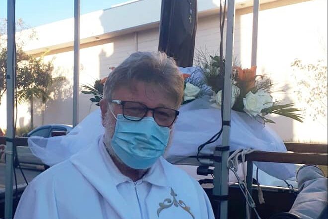 Padre Tarcísio Spirandio no andor da carreata de Santo Antônio que percorreu algumas ruas ao redor da paróquia. (Foto Dani Marzano)