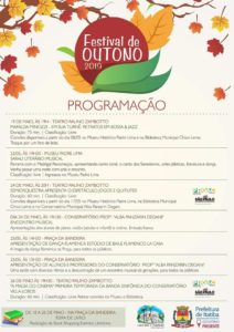 Festival de Outono 2019 Itatiba maio 23, 2019admin Está muito bacana ! Confira no cartaz a programação completa. *A feira do Livro na Praça da Bandeira vai até dia 26 de maio.