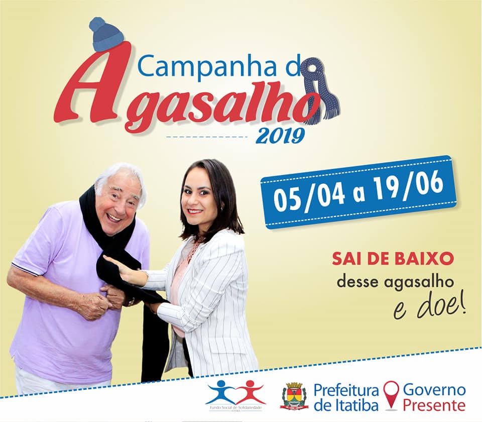 Com o tema “Sai de baixo desse agasalho e doe!”, o Fundo Social de Solidariedade da Prefeitura de Itatiba lançou a Campanha do Agasalho 2019. Todas as atividades que envolvem a Campanha irão desta sexta-feira (5) até o dia 19 de junho, que este ano vai contar com a solidariedade do ator Luis Gustavo como padrinho.