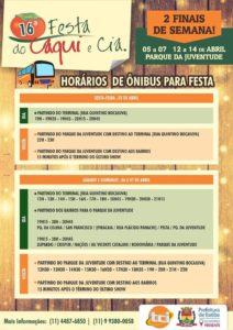 Horários de ônibus para a 16° Festa do Caqui e Cia abril 3, 2019admin Mais informações: 11- 44876850 e 11- 993800058