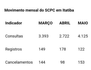 Ao contrário do esperado diante do cenário de estabelecimentos fechados devido ao coronavírus, o mês de maio apresentou excelente resultado no balanço do Serviço Central de Proteção ao Crédito (SCPC) divulgado hoje (05/06/2020) pela Associação Industrial e Comercial de Itatiba (Aicita).