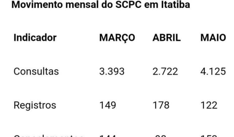 Ao contrário do esperado diante do cenário de estabelecimentos fechados devido ao coronavírus, o mês de maio apresentou excelente resultado no balanço do Serviço Central de Proteção ao Crédito (SCPC) divulgado hoje (05/06/2020) pela Associação Industrial e Comercial de Itatiba (Aicita).