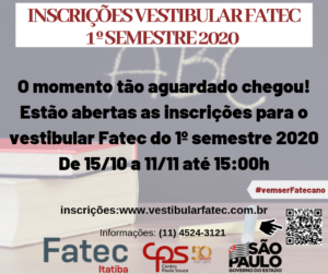 Inscrições abertas para o Vestibular da FATEC de Itatiba