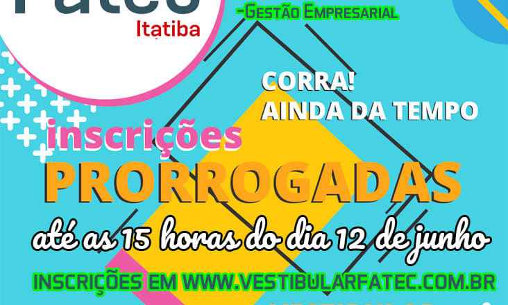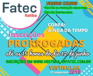 Inscrições PRORROGADAS até as 15:00hs do dia 12/06/2019!