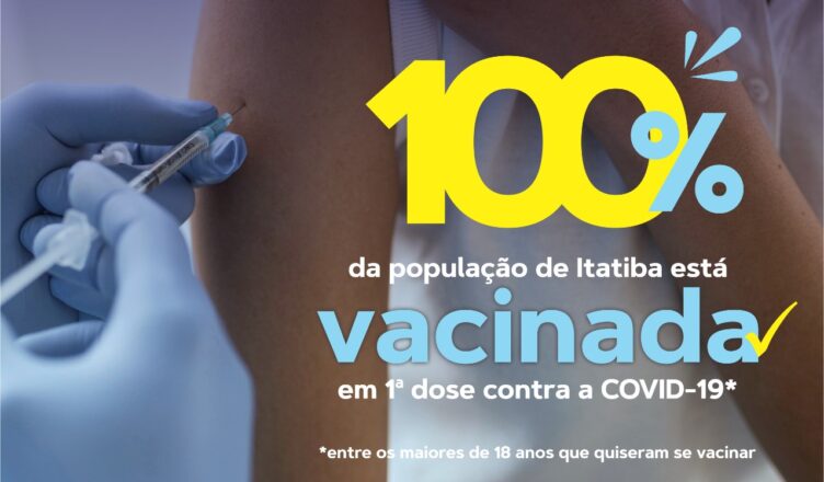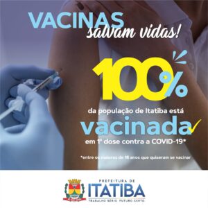 Itatiba atingiu a marca de 100% da população adulta acima de 18 anos vacinada com pelo menos uma dose da vacina anti Covid, excluindo aqueles que optaram por não tomar o imunizante. Mais uma importante vitória no combate à pandemia!