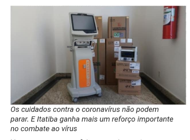 São três respiradores fixos para UTI , sendo um deles para a Unidade de Pronto Atendimento da cidade, e três respiradores de transporte, para casos com necessidade de transferência. Com isso, Itatiba passa a contar com 49 respiradores no total.