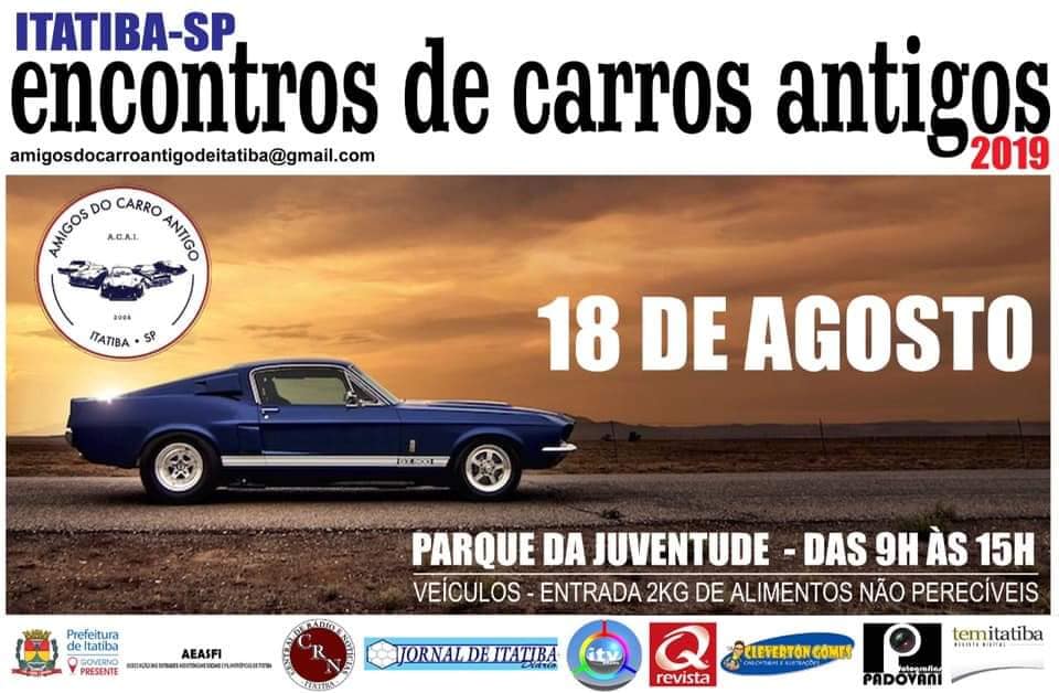 Um dos eventos mais tradicionais da cidade acontecerá no dia 18 de Agosto de 2019, das 9h às 15h, o encontro de carros antigos de Itatiba, no Parque Luís Latorre.