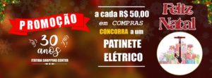 O Itatiba Shopping Center proporciona lazer, cultura, entretenimento e diversão há três décadas e, neste natal, a cada R$50,00 em compras o cliente preenche um cupom e concorre a um patinete elétrico (*consulte regulamento).