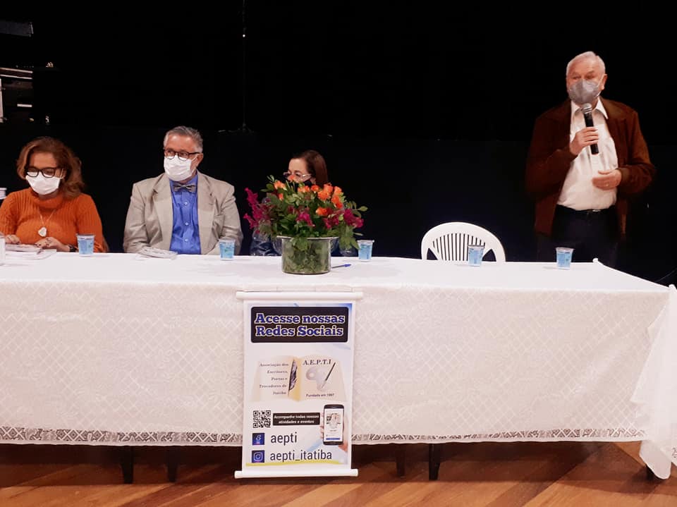 A mesa de honra foi composta pela Presidente da AEPTI, Regina Elisabete Franco da Silva, o Diretor do Jornal de Itatiba, Mané Massaretti, representando a Secretaria de Cultura e Turismo o responsável pelo Acervo Público Municipal, Paulo Henrique Degani e a Coordenadora Geral de Graduação da PUC Campinas, Fernanda Soares de Oliveira Taxa.