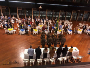 A Presidente da AEPTI Regina Elisabete Franco da Silva recepcionou e chamou os convidados para compor a mesa: Prefeito Douglas Augusto Pinheiro de Oliveira, Secretário de Educação Anderson Sanfins, Secretário de Cultura e Turismo Washington Bortolossi, Maria Aparecida Sanfins Quito (Jornal de Itatiba), Diretor da Universidade São Francisco Campus Itatiba Carlos Eduardo Pizzolatto, Ewerton Mutton e o Comandante do TG 0270 Sargento Fernandes.