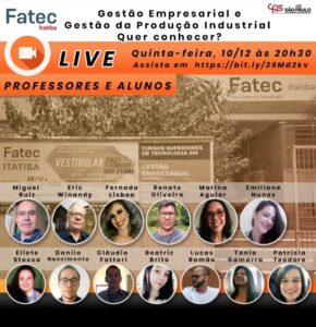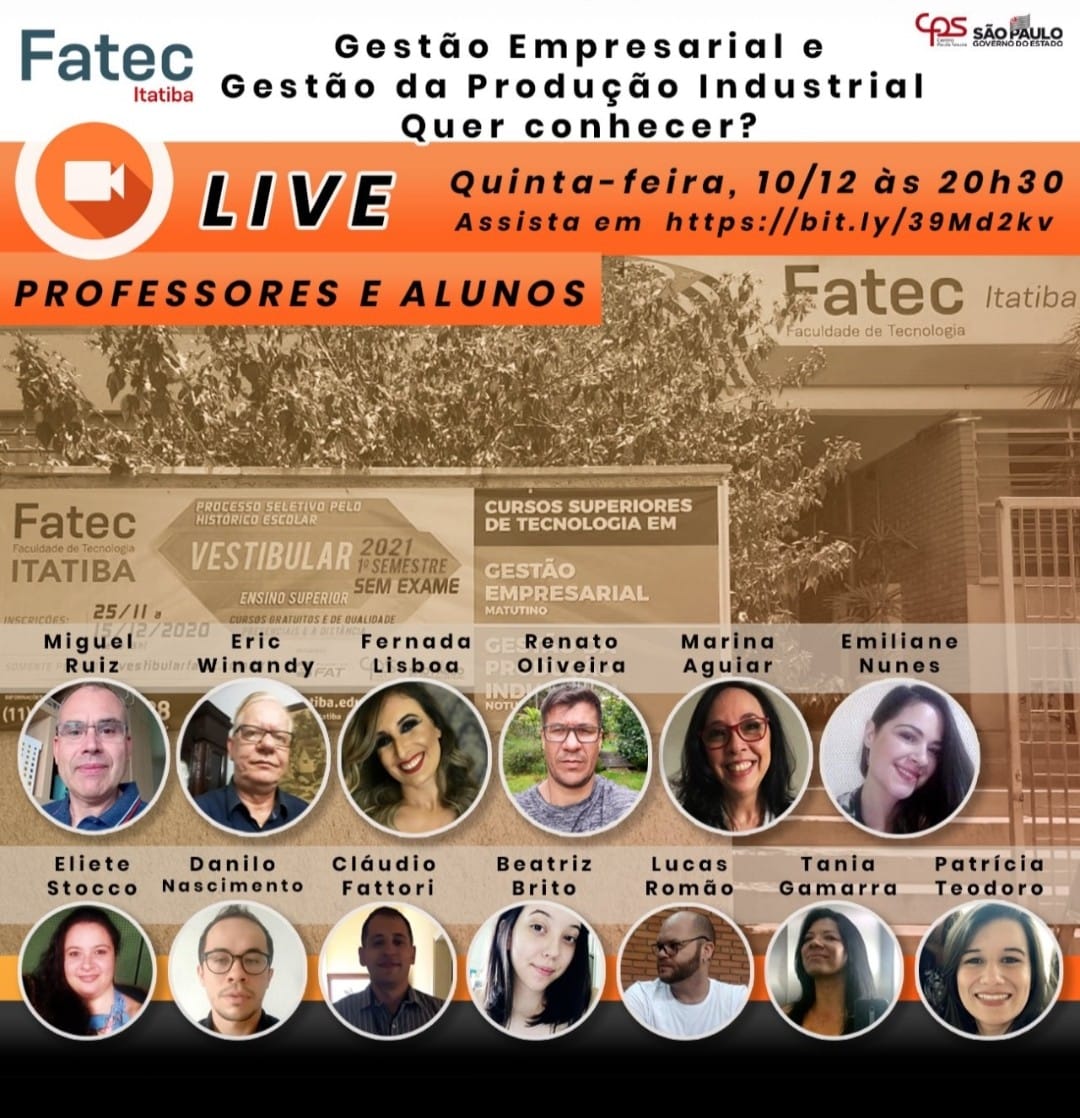 Nesta quinta-feira dia 10/12 às 20h30 vamos falar sobre os cursos Gestão Empresarial e Gestão da Produção Industrial!
