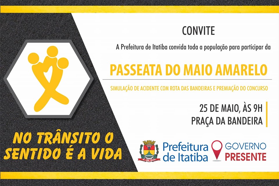 A Prefeitura de Itatiba, através da Secretaria de Educação, em parceria com o Departamento de Trânsito e da concessionária Rota das Bandeiras realiza nesta segunda-feira (06), às 09h, a abertura oficial do programa “Maio Amarelo”, com a proposta de chamar a atenção da sociedade para o alto índice de mortes . O Movimento Maio Amarelo nasce com a proposta de chamar a atenção de todos para o alto índice de mortos e feridos no trânsito através de ações entre o Poder Público e a sociedade civil. Nesta data, alunos de diversas escolas da rede municipal também participarão do evento com apresentações sobre o tema.