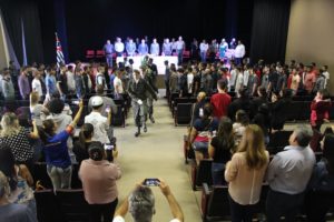 Cerca de 100 jovens morungabenses receberam o Certificado de Dispensa de Incorporação e foram prestigiados por seus familiares, autoridades e público em geral que lotou o teatro.