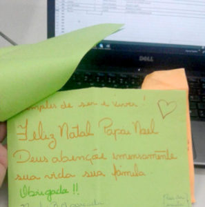 A maioria das escolhas das cartas foi feita pessoalmente, no Balcão de Atendimento da Aicita. Os pedidos facilmente atendidos foram de alimentos, roupas, fraldas e brinquedos, como boneca, bola e carrinhos.