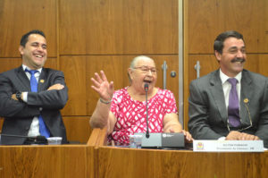 “Dona Maria é, sem dúvida nenhuma, grande merecedora desse preito. Trata-se de pessoa muito estimada, que conquistou, durante a sua vida de virtudes, a admiração, o respeito e o amor das pessoas que com ela convivem”, falou o presidente Ailton Fumachi (PR).