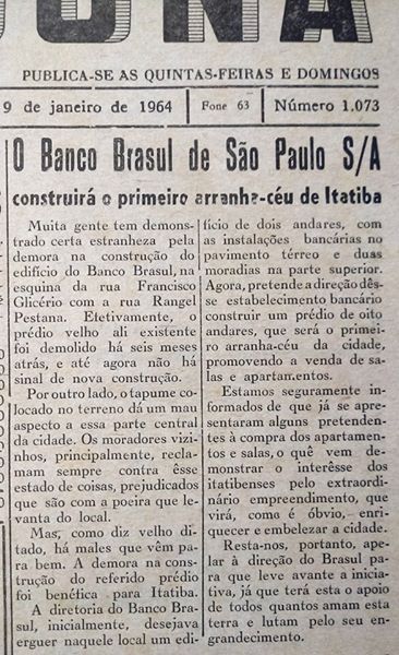 Em meio a esse cenário, em 1964, os itatibenses foram surpreendidos com a notícia de que o antigo Banco Brasul iria construir na cidade um edifício de grande porte com vários andares, que seria o primeiro “arranha-céu” de Itatiba.