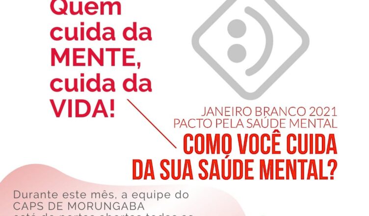A Prefeitura da Estância Climática de Morungaba, por meio do Departamento de Saúde, promoverá ações pela Campanha “Janeiro Branco” no Caps (Centro de Atenção Psicossocial) “Durvalina Martins Pelisson”, no Brumado.