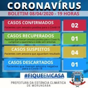 Em Morungaba, foram registrados dois casos com amostra positiva para o Covid-19, na tarde desta quarta-feira (8/4), além de quatro casos suspeitos e um descartado.