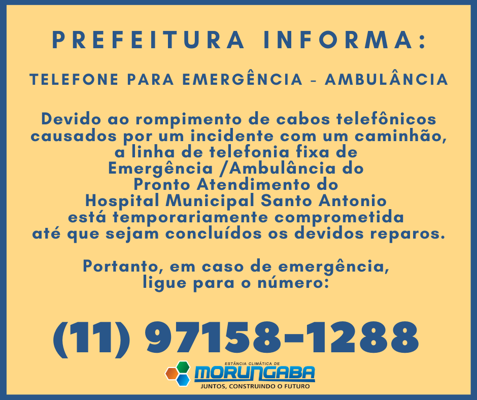 Portanto, em caso de emergência, ligue para o número: (11) 97158-1288
