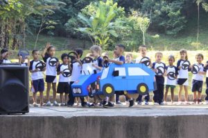 Durante a cerimônia de abertura, alunos do “Maria Gemma” apresentaram um jogral com o tema “Legislação de Trânsito”, enquanto as crianças da segunda fase do CEMEI “Maria Helena” cantaram duas músicas, mostrando símbolos alusivos à campanha.