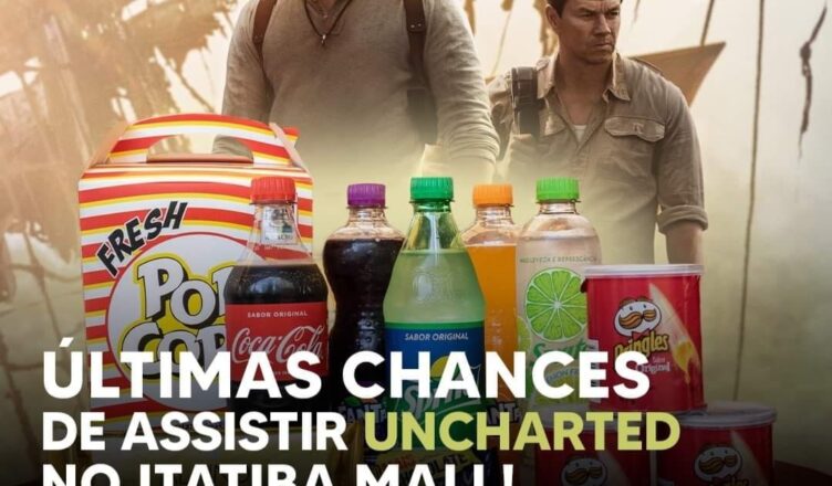 Viva a aventura de #Uncharted: Fora do Mapa no Multiplex Itatiba Mall acompanhado de um combo delicioso da nossa bomboniere!