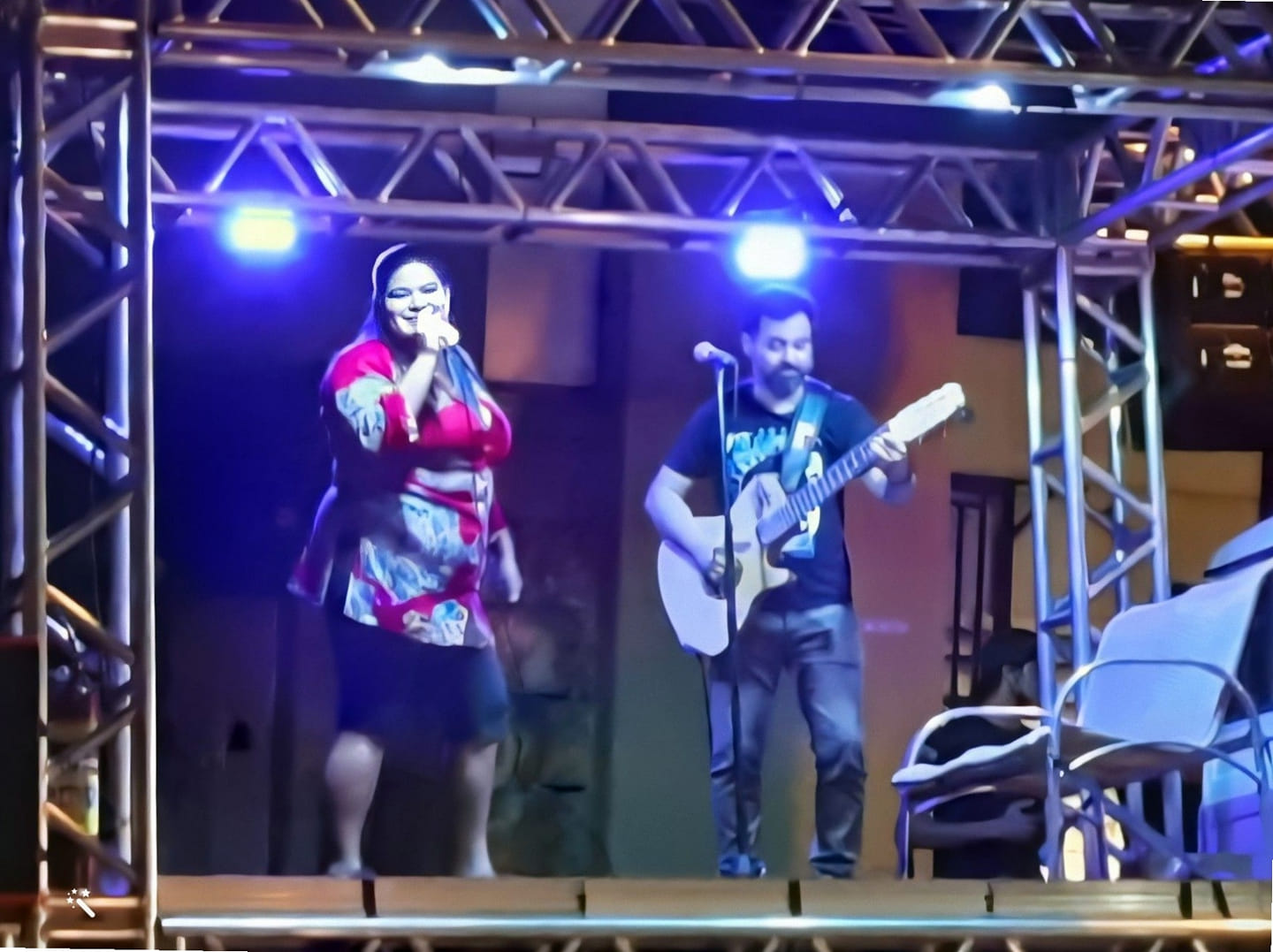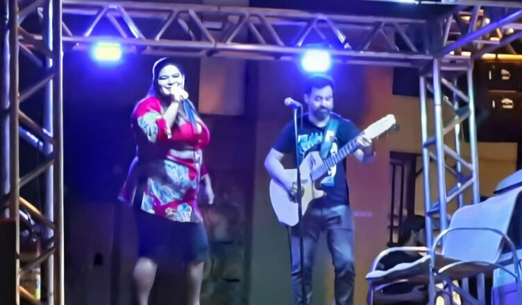 Legenda da foto: A cantora Fernanda Pontes, acompanhada ao violão por Fernando Telles, se apresentou no palco itinerante da última quinta-feira