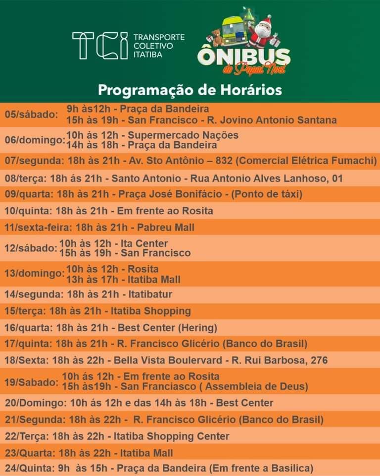 Neste domingo, dia 06, tem ônibus do Papai Noel .